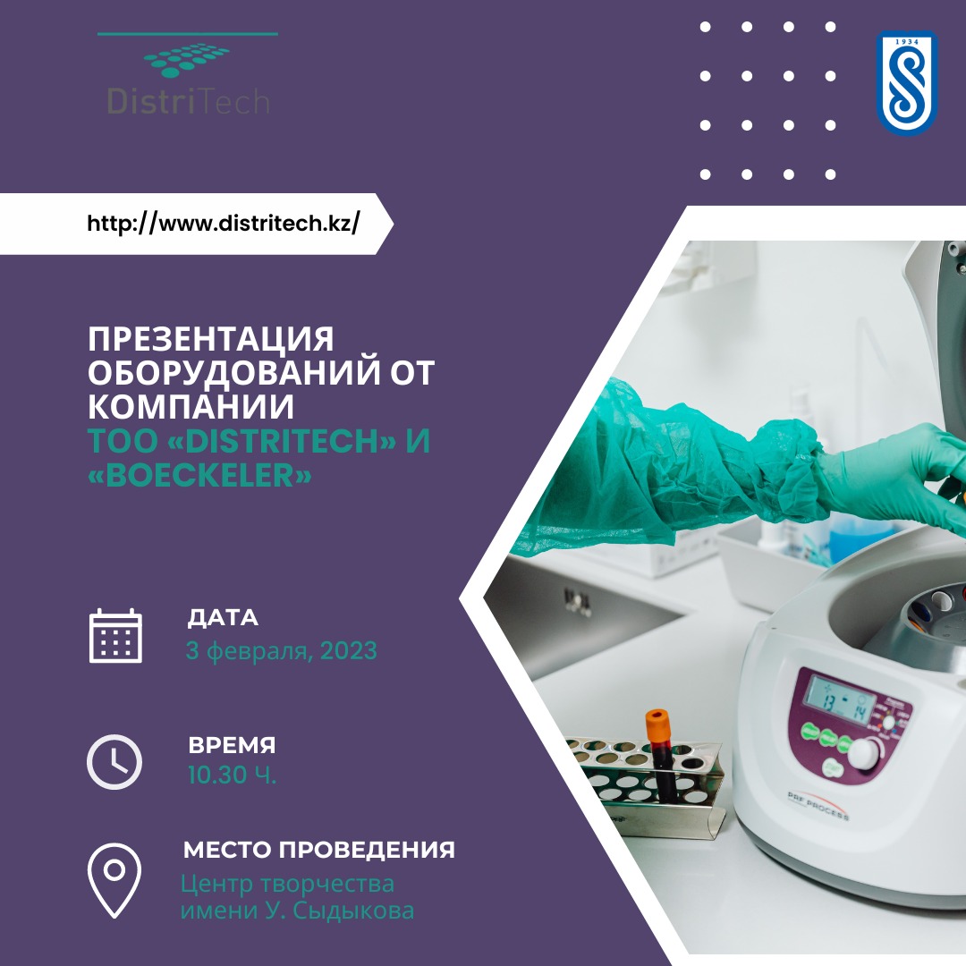 Уважаемые коллеги, студенты, магистранты и докторанты приглашаем Вас на презентацию специализированного оборудования от компании ТОО «Distritech».